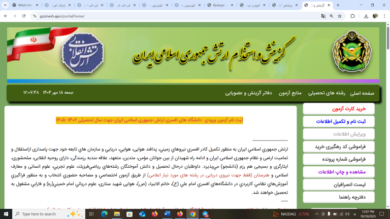 ثبت نام آزمون ورودی دانشگاه های افسری ارتش جمهوری اسلامی ایران جهت سال تحصیلی 1406- 1405